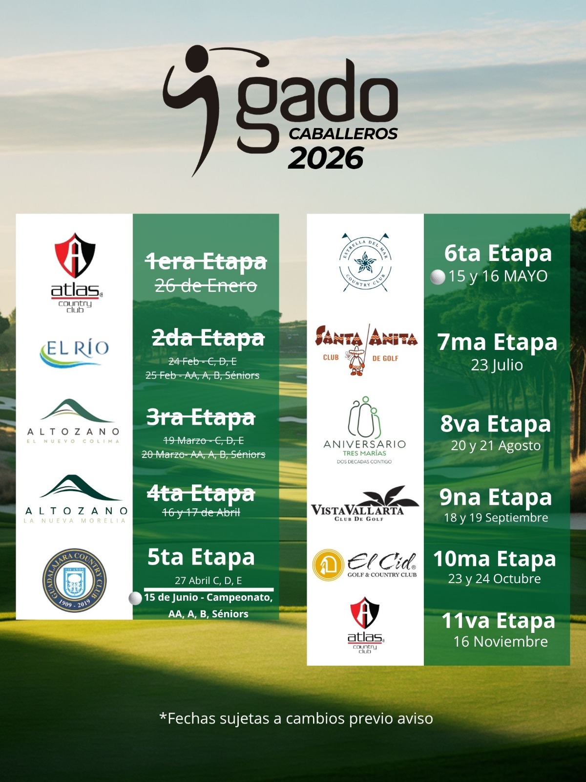 Cada torneo es una oportunidad para vivir el golf en su máxima expresión, con atenciones exclusivas, amenidades de clase mundial y un entorno diseñado para la grandeza.